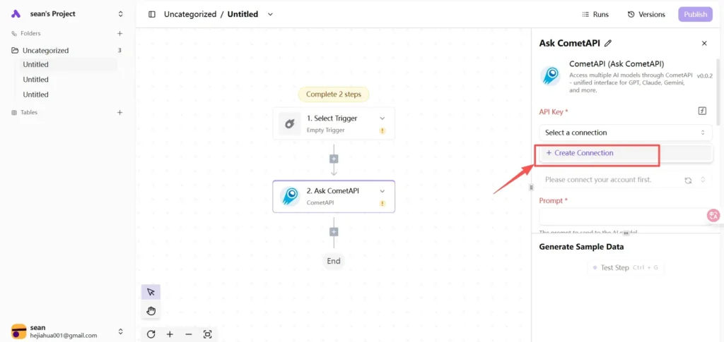 步驟 4 — 將 CometAPI 部分新增至您的流程